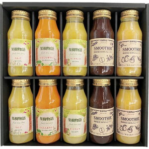 果樹物語の国産果汁のドリンク&スムージー10本セット国産果物のおいしさをギュッと凝縮したフルーツドリンクと果汁100%のヨーロピアンスタイルスムージーのセットです。メーカー型番:21DS10A内容物:果樹物語(ラ...
