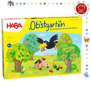 さくらんぼ、プラム、梨、リンゴが美味しそうな果樹園にカラスが!ルールが分かりやすいので、3歳くらいの子どもから楽しめるドイツ・ハバ社(HABA)のボードゲームです。