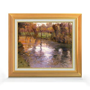 油絵 絵画 直筆仕上げ フリット・タヴロー 川の畔の果樹園 アートフレーム サイズ 額入りS:ブラウン 【油彩 布キャンバス 国内生産】 絵画 販売 風景画 321×271mm 複製画 送料無料 絵画...