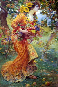 まだ青いリンゴの木の下に、ピンクのバラや色とりどりの花が咲き乱れています。華やかですが、どこか夢幻的な傑作。原画:制作1911年〜1912年●絵寸法:(約)長辺40×短辺30.5cm●額寸法:(約)長辺58×短辺48.5×4cm●重量...