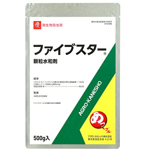 ファイブスター顆粒水和剤 500g×3袋セット 商品特長 ■果樹専用のBT殺虫剤です!ハマキムシ・ケムシに良く効き、蜂類、天敵に害がありません。 ■ マメコバチに影響が少ないので、開花期でも散布できます...