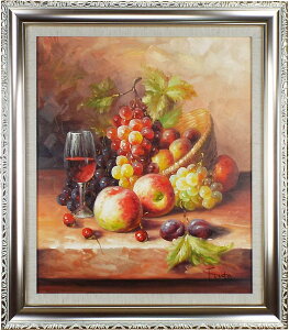 油絵 絵画 直筆仕上げ ルノワール 花とフルーツ アートフレーム サイズ 額入りL 【油彩 布キャンバス 国内生産】 絵画 販売 静物画 641×531mm 複製画 送料無料 (ルノアール) 絵画 販売 インテリア 油絵 油彩 壁掛け...
