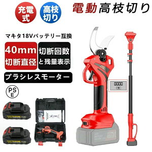 【高枝切りの延長ポールと接続可能】改善点旧の商品に比べ、ナイフサイズ40mmになり、最大の切断経40mmに達します。強力なパワーを備えており、損傷することなく直径40mm以内の木を簡単に切断できます。電動剪定ばさみは、従来の手動剪定よ...
