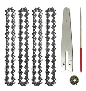 この商品について【超耐摩耗チェーンを】-全長24cmの6インチチェーンソー替刃を,ピッチ:1/4"、ゲージ:0.043"、ドライブリンクの数:37コマ?18Tカッター。パッケージ内容:4本入りソーチェーンそおよび 1 つのガイドパーと...