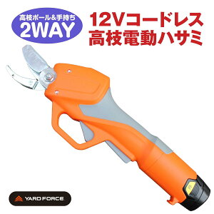 枝キャッチ機能で果実や枝を落とさない高枝切りもできる電動ハサミ ●軽くて長くて1台2役で使えて、電動なので力いらずでラクラク作業 ●高い所の柿などの果実収穫や、隣の敷地に伸びてしまった枝切りに大活躍 ●ポールをつけて