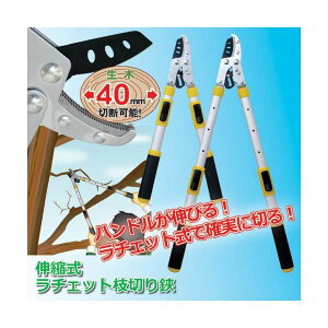 ■商品内容今までの太枝切り鋏では切りにくかった作業がもっとラクになる「ラチェット」方式を使った鋏。力点を4段階に分けて徐々に確実に切っていきます。切れる枝の太さは最大直径40ミリ。ハンドルは長さ調節が可能で、4段階の長さを