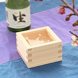 ひのきの香りが清々しい、冷酒にぴったりの枡に、よろこびを寿ぐ文字や図柄を焼印であしらいました。お祝いの品に、海外の方へのお土産にもぴったりです。ロッキング組みがデザイン的アクセントになっています。お酒※こちらは【取り