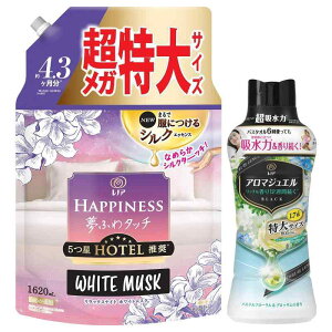 レノア Lenor 【まとめ買い】【柔軟剤+ビーズ】 ハピネス夢ふわタッチリラックスナイトホワイトムスクの香り柔軟剤詰め替え 1,620mL + アロマジュエル 香り付け専用ビーズパステルフローラル新レノアハピネス夢ふわタッチは...