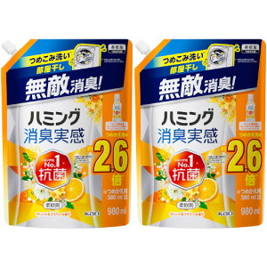 kao 花王 ハミング消臭実感 オレンジ&フラワーの香り 柔軟剤 つめかえ用 1080ml*2