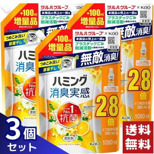 kao 花王 ハミング消臭実感 オレンジ&フラワーの香り 柔軟剤 つめかえ用 1080ml*3