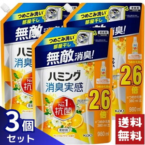 kao 花王 ハミング消臭実感 オレンジ&フラワーの香り 柔軟剤 つめかえ用 980ml*3