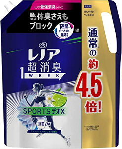 レノア 超消臭1WEEK 柔軟剤 SPORTSデオX フレッシュシトラスブルー 詰め替え 大容量 1790mL(約4.5倍) 1袋レノア超消臭1WEEKは、パワーアップして、1週間消臭(*1)抗菌(*2)が可能に...