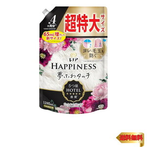 -/超メガ特大/-・パッケージ個数:1・新レノアハピネス夢ふわタッチは、洗濯するたび気になる衣類のダメージまで防ぐ。Tシャツの首元のヨレやニットの毛玉を防いで*、5つ星ホテルも認めたなめらかな肌ざわりが続きます。(*新品から複数回
