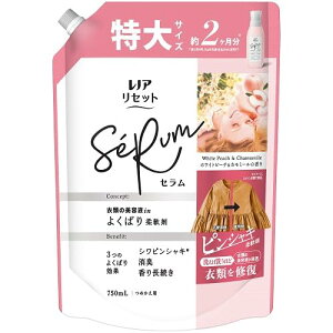 内容量:750mL商品名 レノア リセット セラム 柔軟剤 ホワイトピーチ&カモミールの香り つめかえ 特大 750mL 内容量 750mL 商品詳細 ●衣類の美容液inよくばり柔軟剤 ●洗えば洗うほど衣類の美容液が浸透