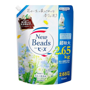 花王 ニュービーズ ローズ&マグノリア 詰替え用超特大サイズ 2.65kg 洗濯用洗剤 柔軟剤入り。詰替え用6.1gの約4.1倍!干すとき、たたむとき、しまうとき。天然アロマ*配合の心地よい香りとやわらかい肌触りに包まれる...