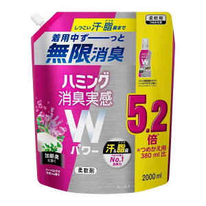 ハミング 【大容量】消臭実感Wパワー 柔軟剤 しつこい汗・脂臭まで、着用中ず~っと無限消臭 ハーバルデオサボンの香り 詰替え 2,000ml【高さ×幅×奥行き】315×255×139[ミリメートル]2.0...