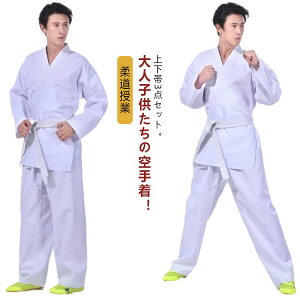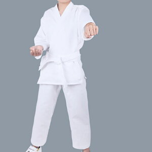 上衣・下衣・帯の3点セット。大人〜子供たちの空手着!綿混生地で乾きやすい、耐久性も十分です。柔らかく、肌触りはめっちゃよいです。軽量の薄い生地のため非常に動きやすく、組手に最適な空手着です。空手着は、すばやい動きが求め