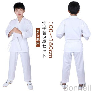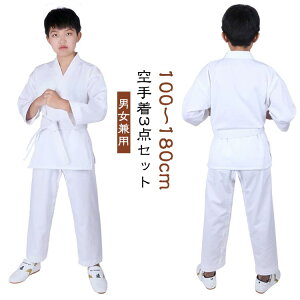 100-180cm!【空手着 3点セット】子どもから大人まで着用可能です。空手道着上衣・パンツ・帯の3点セットズボンは、ゴム仕様で履きやすい構造です。白帯付きなので、初心者の人もすぐに稽古が始められます。初心者、学生、中高生、道場練