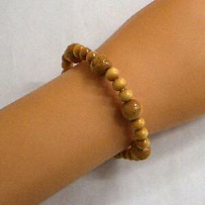 赤字覚悟の在庫一掃セール!木の温もりが感じられる腕輪。素材は「柘」。一番大きな玉(親玉)には、十二の方位を守る守護仏(仏尊)の仏画がはめ込まれています。表面はレンズになっており、仏画をご覧いただく