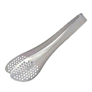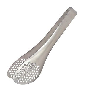 通常のステンレスとは違い、ばね材を使うことで、継ぎ目やビスを使わずに一枚板で作り上げた非常に手間のかかっているトングです。 穴あき自体が珍しく、余分なドレッシングを落としたり、お肉の脂を落としたりと小さな違いが大きな便