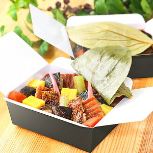 ごろっとした山海の食材を、贅沢にちりばめたちらし寿司です。食べやすいように2個組になっていますので、日を分けてお召し上がりいただけます。電子レンジで温めた後に、蓋を空けると柿の葉の薫りが広がります。 ○名称:寿司 ○内容