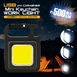 キーホルダー型の小さな充電式COBライト。薄くて軽くて持ち運びに便利!カラビナで、スタンドで、磁石で、様々な使い方が出来ます。ライトは3段階の明るさと点滅の4パターン。