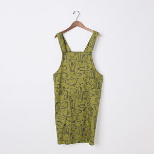 ティーポットやマグカップ、カトラリーのモチーフをプリントしたエプロン。パッと被るだけで楽に着けられます。ユニセックスで着用でき、家族でシェアしてお使いいただけます。肩紐はループ付きでずり落ちにくく、ボタンで長さ調整が