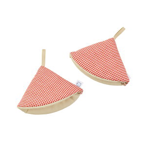 細かいギンガムチェック柄が可愛らしい、鍋つかみセット。両手鍋にも使えるように、2個セットでご用意しました。蓋のツマミや取っ手などが掴みやすい、円すい型のデザインです。カラーは、グリーン、ネイビー、レッドの3色をご用意し