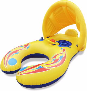 お子様だけでなく、保護者様分の浮き輪もありますので両手でお子様と遊ぶことができます。 お子様が入る浮き輪部分には取り外し可能な屋根がありますので、強い紫外線や水しぶきからお子様を守ることができます。 お子様のお手元にはハンドルやおもち...