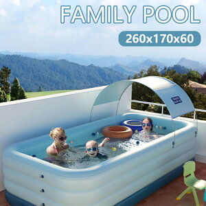 製品パラメータ プール外径(L*W*Hcm):2.6m*3層 プール内径(L*W*Hcm):260*170*60 日除け小屋(L*W*Hcm):216*125*58 適用人数:1-6人 プール底部:補強底部 空気填充時間:約3-6分 ...