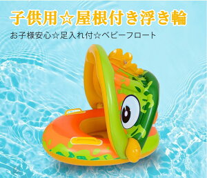 浮き輪 子供 屋根付き 日差よけ ベビーフロート 背もたれ 足入れ 赤ちゃん 乗り物 ベビー用 子供用浮き輪 うきわ お風呂 ボディリング 出産祝い 浮き具 プール 素材:PVC サイズ:72*58cm