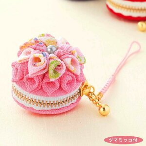 ちりめん幸せ根付つまみ細工マカロンのコインケース 桃【 サイズ(約) 】 直径4×厚み3.5cm 根付の長さ8cm(完成サイズ)16×5.5cm(パッケージサイズ)【 セット内容 】 ちりめん生地、マカロン土台...