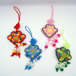 中華結びには結び方によって色々な意味がありますが、本商品はシンプルながらも可愛い中華結び・吉祥刺繍飾りがついた中華風ストラップです。 ・サイズ 約9cm ・中国製 ※色種類は様々ですので、お任せ2個セット出荷となりますので、予