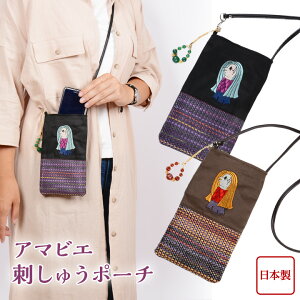 ポリエステル・合成皮革 根付:赤メノウ・緑メノウ・ガラスビーズ サイズ(約) ポーチ:20×11.5×マチ1cm ショルダー長105cm ストラップ:全長11cm 重量(約) ポーチ:45g 根付:6g ...