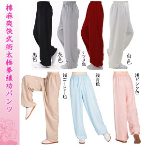 商品詳細 商品名 棉麻爽快武術太極拳練功パンツ 素材 棉麻 カラー 黒色、灰色、ナツメ色、白色、浅コーヒー色、浅青色、浅ピンク色 サイズ S、M、L、XL、XXL 商品説明 男女兼用の太極拳パンツです...