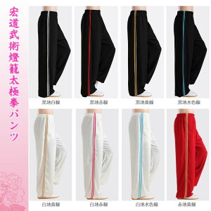 商品詳細 商品名 宏道武術燈籠太極拳パンツ 素材 ポリエステル カラー 黒地白線、黒地赤線、黒地黄線、黒地水色線、黒地ピンク線、黒地バラ色線、白地黄線、白地赤線、白地水色線、白地青線、白地黒線、赤地黄線...