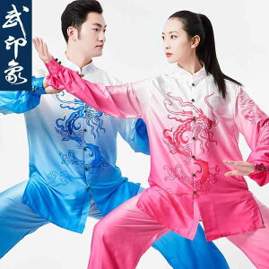 太極拳 服 レディース ヨガ 瞑想 運動 拳法 表演服 おしゃれ 動きやすい 男性 上下セット パンツ グラデーション 武道 競技 パフォーマンス スタンドカラー 青 ピンク グレー 大きいサイズ