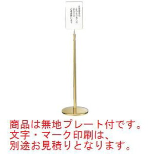 商品は無地プレート付です。文字・マーク印刷は、別途お見積りとなります。 【素材】スチール製ゴールドメッキ仕上げ 【サイズ】底径:φ300×高さ:920mm ※アクリル製白無地プレート付になります。 ※写真の文字・マーク印刷は、別途お見積