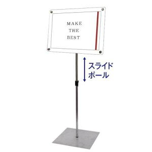 ■製品仕様●ベース=ガルバニュウム鋼板(t=1.6mm )●ポール=ステンレス H840~1500mm φ19mm/φ16mm(スライドポール)●面板=アルミ複合板(白)3mm厚+アクリル透明2mm厚●化粧ビス=アルミ/アルマイト仕上...
