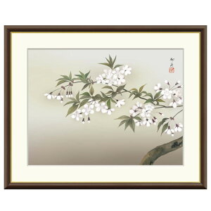 【インテリアアート・複製画】桜花に小鳥 森山観月 42×34cm F4サイズ 樹脂製フレーム世界の有名美術館がレプリカを制作するために採用している最先端ジグレ版画技法で特製新絹本画布に表現、最終仕上げは手彩による補正が加えられ...