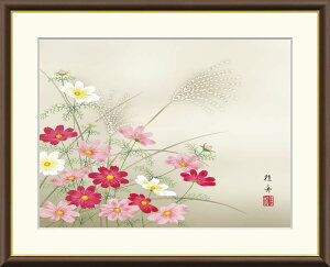 【インテリアアート・複製画】秋桜 長江桂舟 42×34cm F4サイズ 樹脂製フレーム世界の有名美術館がレプリカを制作するために採用している最先端ジグレ版画技法で特製新絹本画布に表現、最終仕上げは手彩による補正が加えられ...