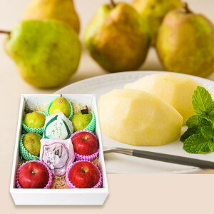 名称 ラフランス(西洋梨)、サンふじりんご 内容量 約3kg(ラフランス:4〜6玉、サンふじりんご:4〜6玉) ※ラフランスは追熟が必要な果物です。商品到着後、同梱される食べ頃のご案内を目安にお召し上がりください。※こちらの商品は