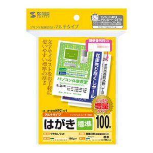 様々なプリンタで手軽に使える。マルチタイプのカード用紙。はがきサイズ。つやなしマット。両面印刷。厚手。100枚入り。JP-MT02HKN-1 サンワサプライ。激安通販のイーサプライ 16時までのご注文なら最短当日出荷。3,000円以上...