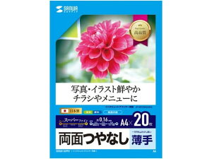 POPやカタログなどに最適な、厚手のつやなしマットタイプ。両面印刷が可能な、インクジェット用紙。A4。20枚入り。JP-ERV3NA4N サンワサプライ。激安通販のイーサプライ 3,000円以上、送料無料(一部地域除く)。16時までの...