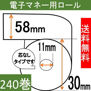 商品詳細 サイズ 幅58mm 商品外径30mm 内径11mm芯なし 巻長 10メートル 紙質 感熱紙(サーマル) 梱包方法 6巻ずつビニール包装 入り数 240巻入り 紙厚 65ミクロン 保存タイプ 中保存(7年保存) タクシー電子マ...