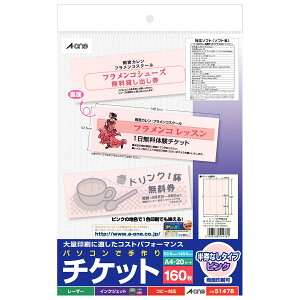 【返品種別A】□「返品種別」について詳しくはこちら□◆いろいろなプリンタで印刷できるチケット用紙です。◆ミシン目部分を山折り谷折りするだけで切り離せるマイクロミシンカットタイプです。◆代表的なチケット用紙に出来るだけ近