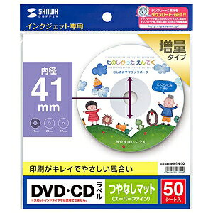 【特長】●オリジナルのDVD・CDを美しく完成させるオリジナルラベルがインクジェットプリンターで手軽に作れます。標準サイズの内径41mmタイプです。●スタンダードなつやなしマットタイプ(スーパーファイングレード)で、写真画像も美し