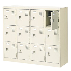 中棚付きのシューズロッカーです!公共施設・オフィス・学校等で活躍しています。商品名 12人用シューズロッカー 4列3段 鍵なし 中棚付き。