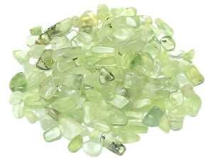 ライトグリーンが美しいプレナイト穴なしチップ(さざれ)です。和名でブドウ石と呼ばれるだけあって、まるでマスカットを思わせる様なフルーティーな色合いが特徴的です。形状が全体的に不揃いでマットな質感、角のまるい粒で、雰囲