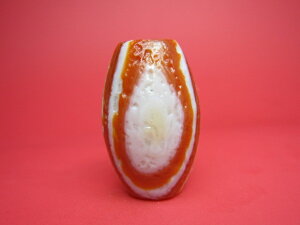 【チベット紅玉髄天珠】 ☆商品情報☆ 長さ:約49mm 直径:Φ約14mm 穴サイズ:約Φ3mm 中国・チベット天珠 ※照明等の関係で実際の色とは多少イメージが異なる場合がありますのでご了承ください。 ※こちらは一点物ですので、画像の...